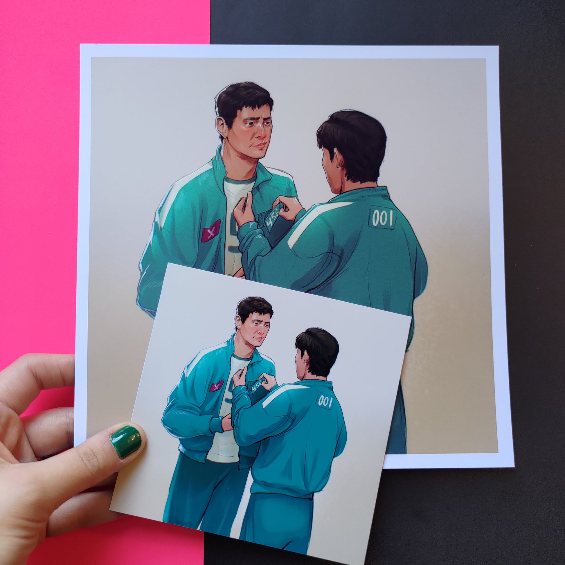 Printed on 255gsm semi gloss paper. You can see the size difference between the medium and mini sizes in the photos! <3